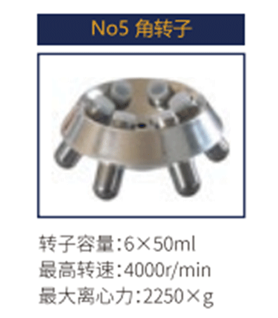 No5 | 角轉(zhuǎn)子 | 6X 50ml | 4000 r/min | 2250Xg |